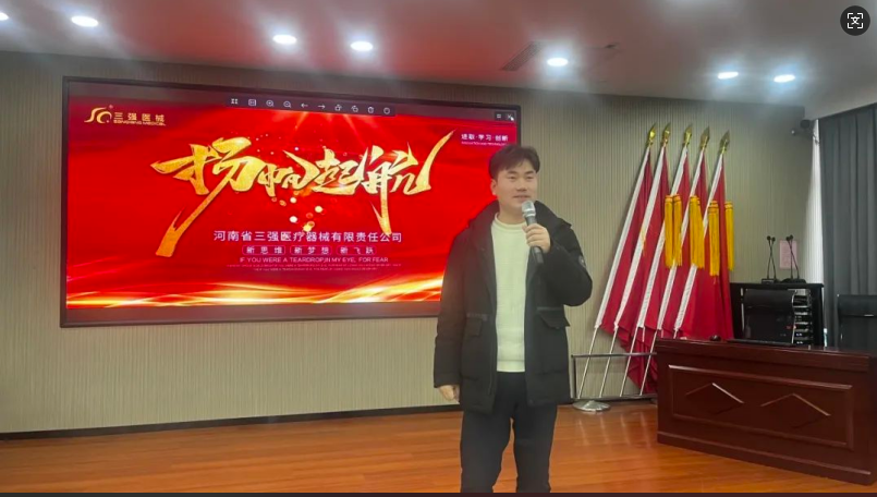 會議伊始,河南省三強醫(yī)療器械有限責任公司總經(jīng)理馮敬凱送來新年的祝福,并為新一年的工作指明方向、明確目標。同時明確2025年 對市場部的全體調(diào)整,進行扁平化管理,全體成員要在各個區(qū)域總監(jiān)的帶領下堅定信念,努力奮斗向前。